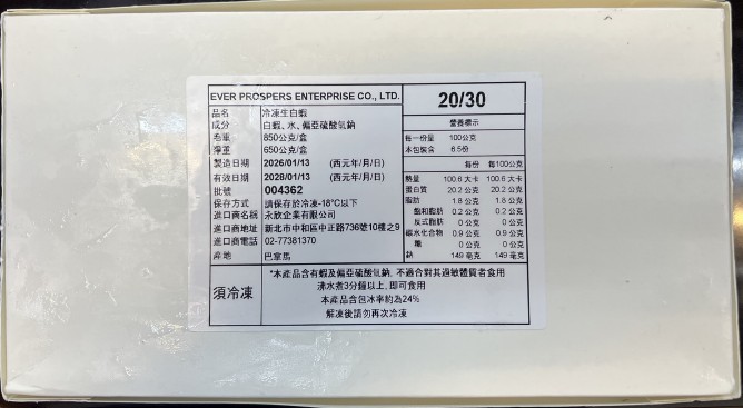 紅太陽 白蝦 2/3 3/4 4/5